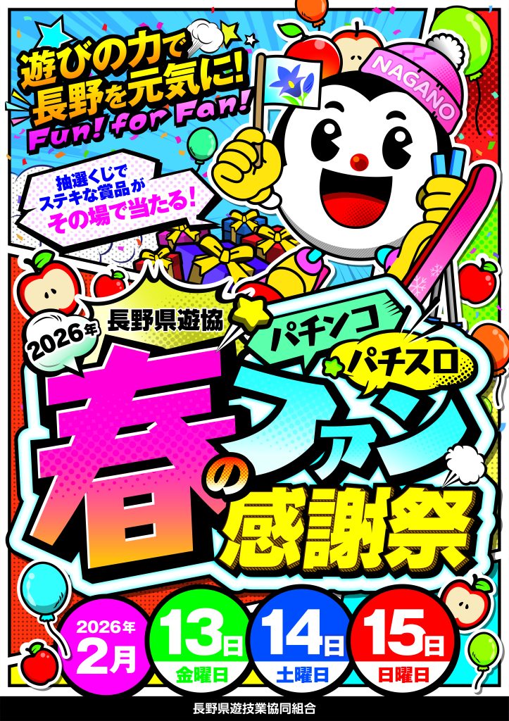 2026年長野県遊協春のパチンコ・パチスロファン感謝祭 2月13日(金)・14日(土)・15日(日)